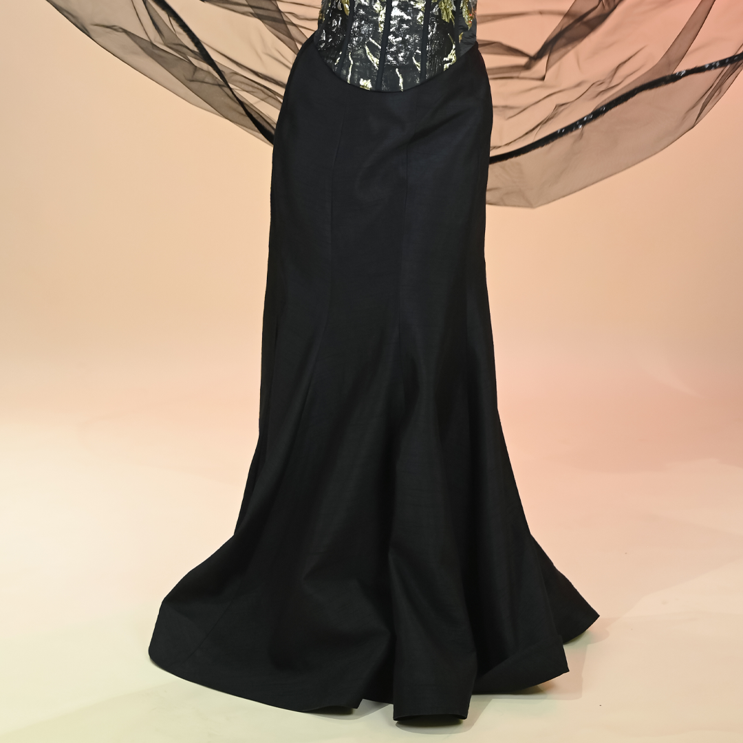 The Net fabric is specially designed by our team and crafted with great care and precision. With the floating mirror effect of jaali work, the garment is then styled at our workshop with finest details. We recommend dry clean only.